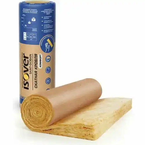 Isover Скатная Кровля Комфорт - инновационная тепло- и звукоизоляция из минеральной ваты на основе кварца с защитным покрытием по технологии Kraft. Материал специально разработан для скатных кровель и мансард, допускается также применения для каркасных стен и полов по лагам. Защитный слой предотвращает осыпание пыли при монтаже, обладает пароизоляционными свойствами, упрощает монтаж и делает его комфортным. Безопасен для здоровья человека и окружающей среды.